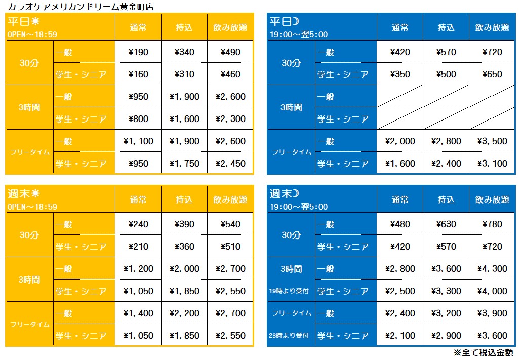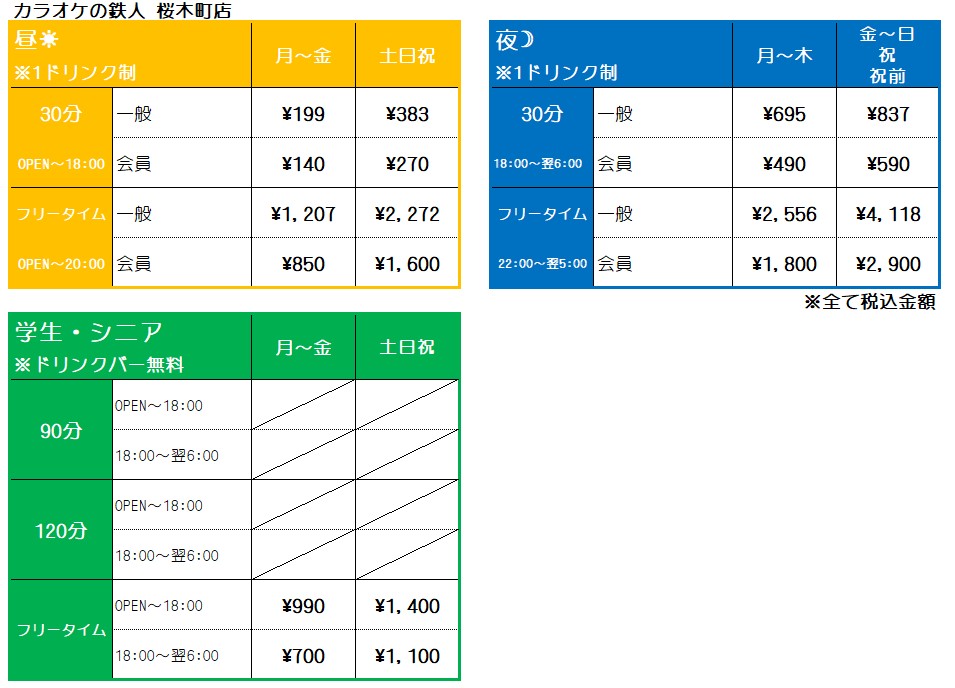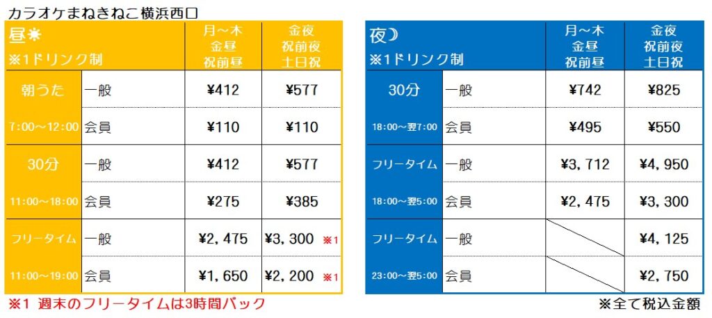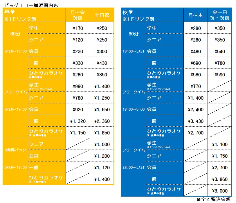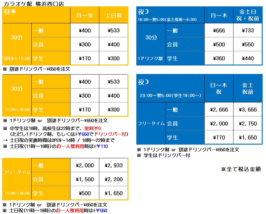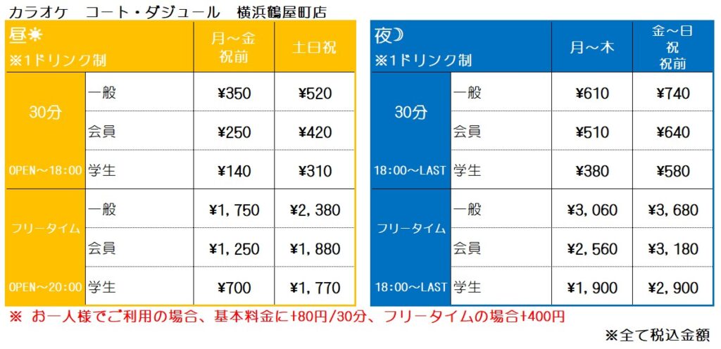 からおけかふぇ 杉の子 野毛桜木町店料金