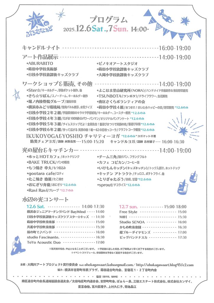 蒔田公園と大岡川周辺の冬を彩る地域イベントとして親しまれています。