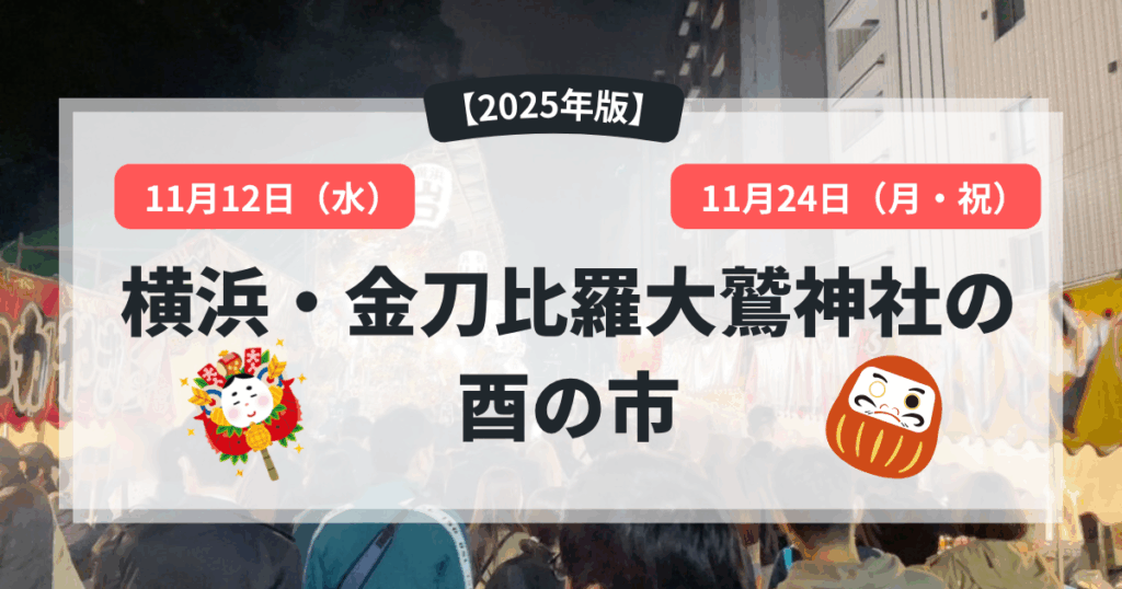 ※ 開催日時・イベント内容は変更になる可能性があります。お出かけ前には金刀比羅大鷲神社の公式ウェブサイトや SNS、社務所などで最新情報をご確認ください。